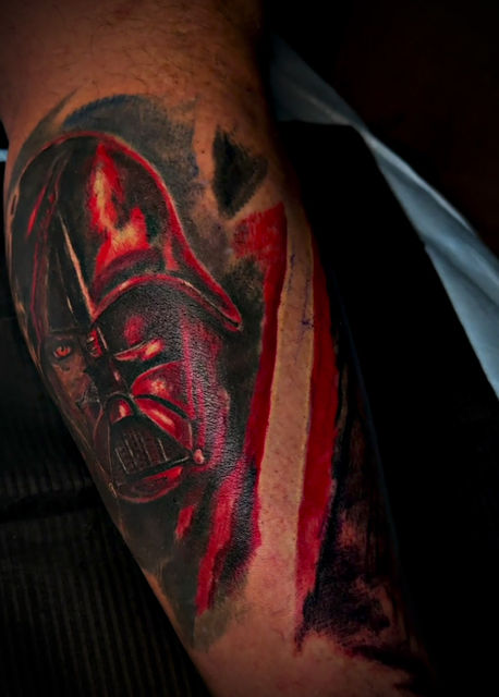 Now pushing the limits of what he can do, he has been taking other forms of art classes to help him get even better at what he is most passionate about. Tattooing is his life and he will continue to live it as well as learn from it. He originally started his art career painting graffiti style murals which he still does today. The styles he enjoys most are the completely original color or black and grey designs that he first designs from nothing. He tries to push the limits to impress his clients by doing so with his custom freehand drawings and sketches to portray what the client has in mind.